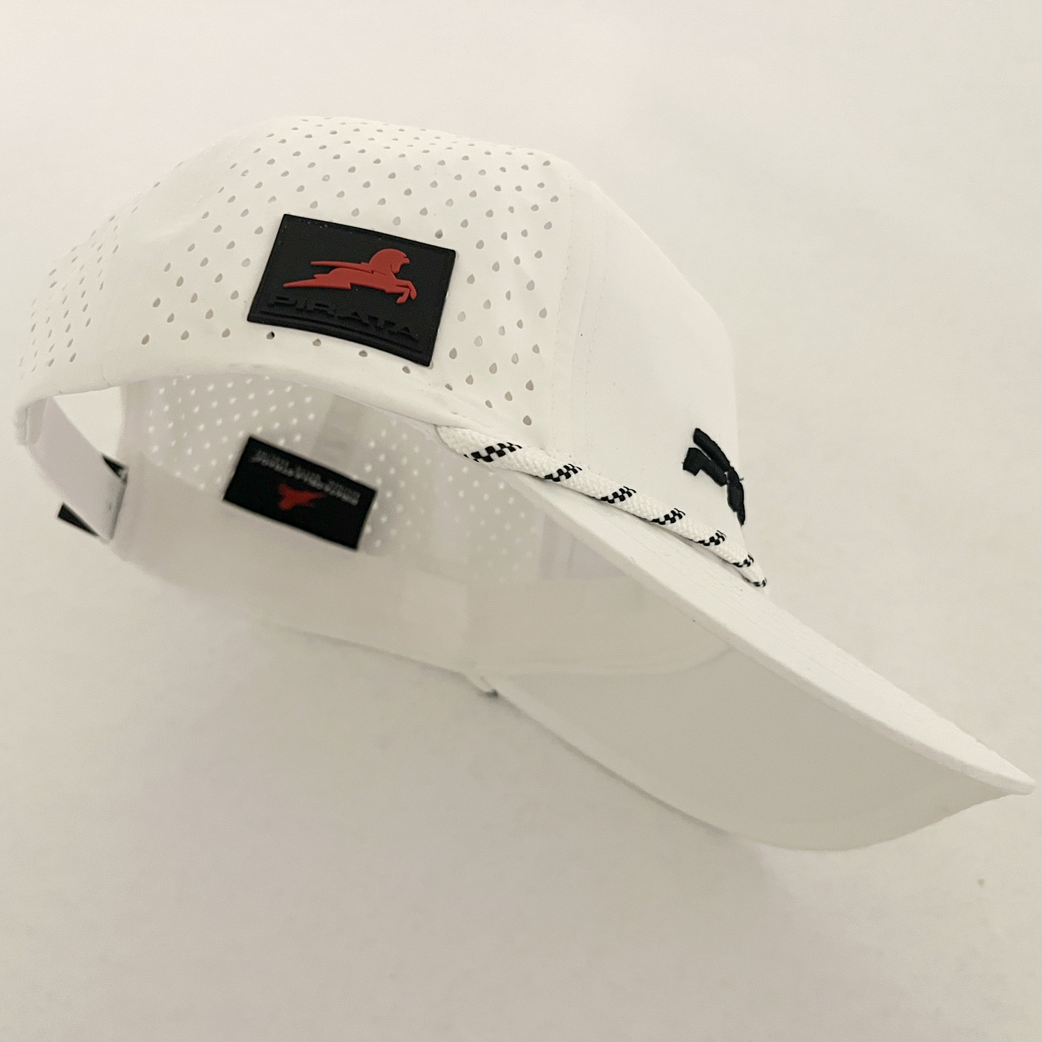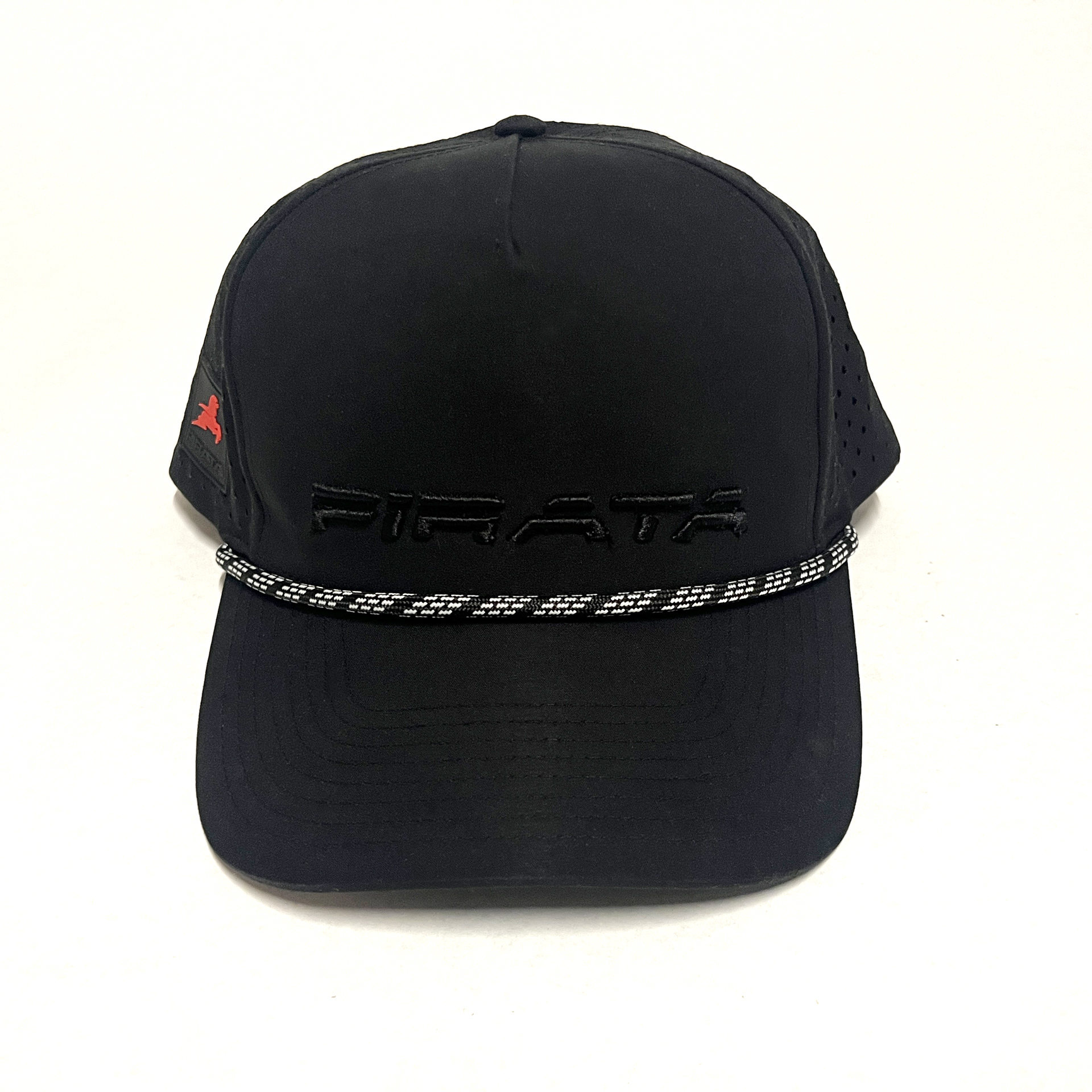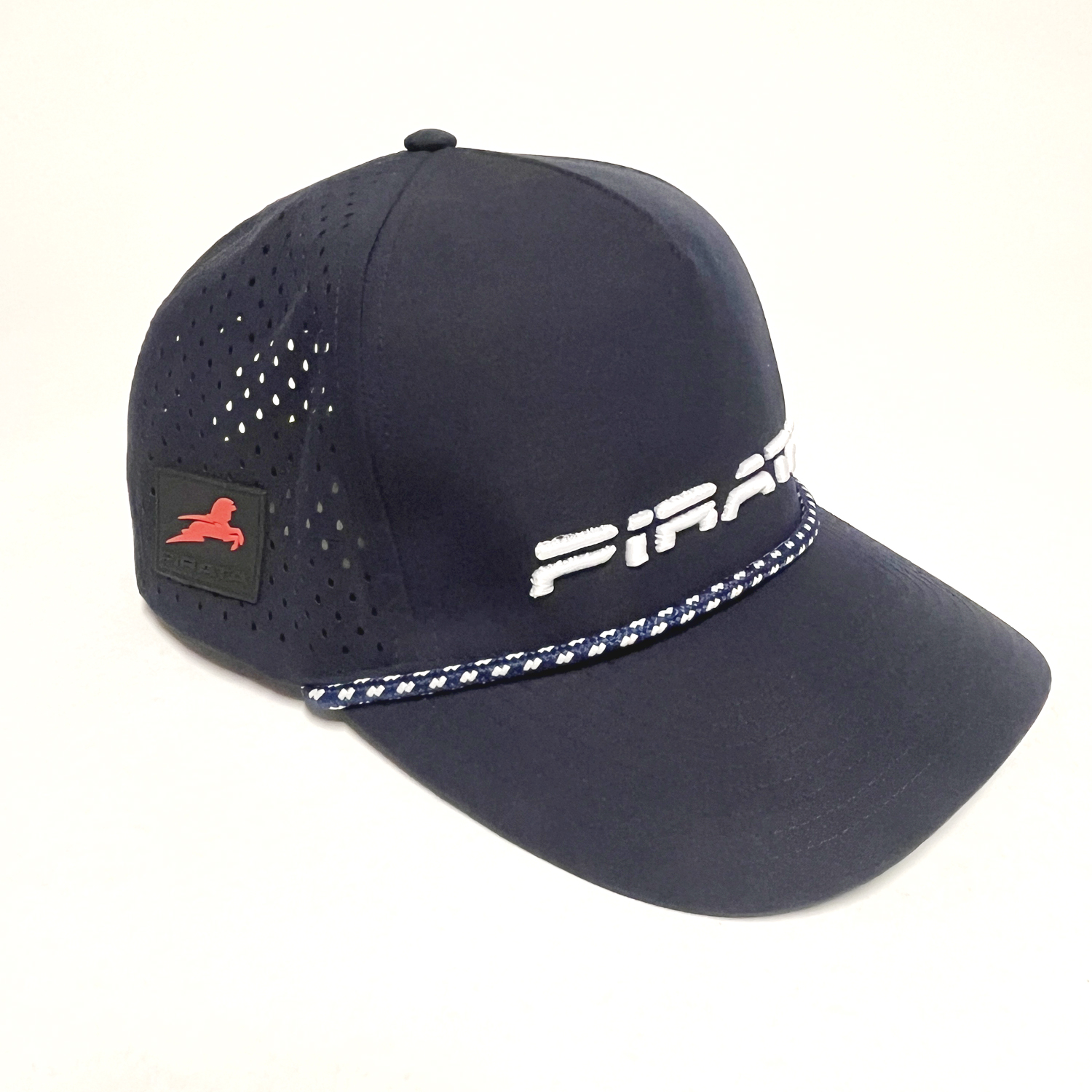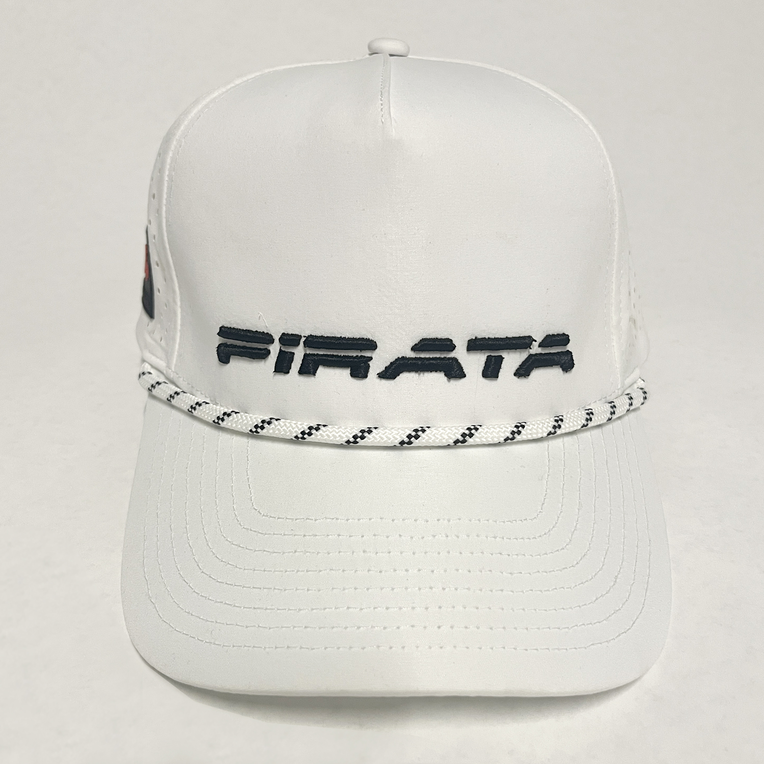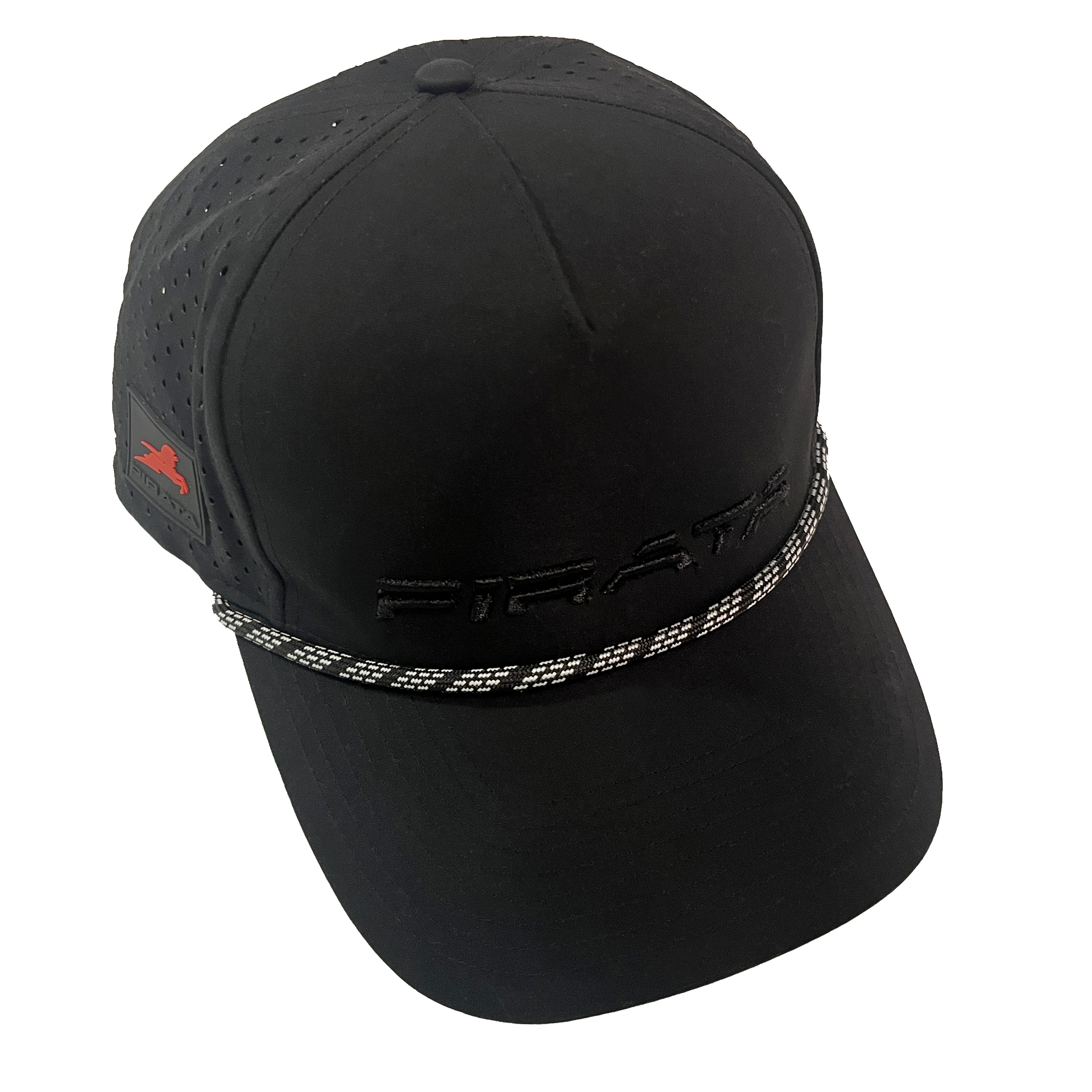 The Pirata Performance Golfer Cap blends modern performance technology with the bold, refined spirit of Pirata Della Strada®.🏁 Designed for golfers and adventurers who live life on the redline, this structured mid-profile 5-panel rope cap is crafted from durable 100% recycled polyester, delivering both sustainability and performance. Its PFC-free water-repellent finish keeps you dry in light rain or early morning mist, while the laser-perforated panels provide exceptional airflow for maximum breathability on and off the course. A quick-dry moisture-wicking sweatband works alongside antibacterial and deodorant treatments to keep you cool, fresh, and focused throughout the day. Finished with a curved visor featuring eight rows of stitching and an adjustable snapback closure, The Pirata Performance Golfer Cap offers a comfortable 58 cm fit and a clean, modern aesthetic—perfect for golf, outdoor lifestyle wear, or representing the refined performance ethos of Pirata Della Strada.