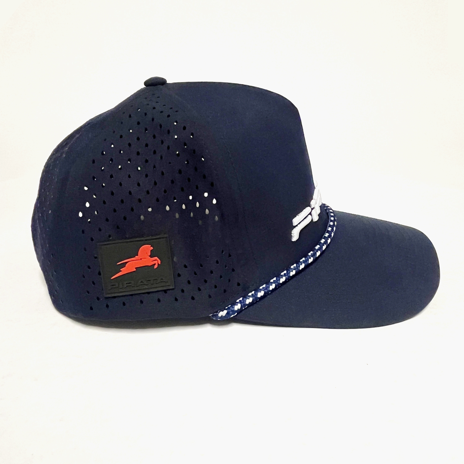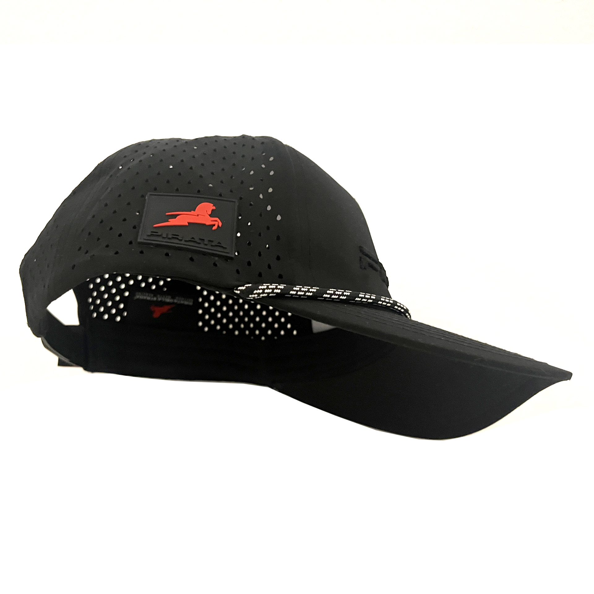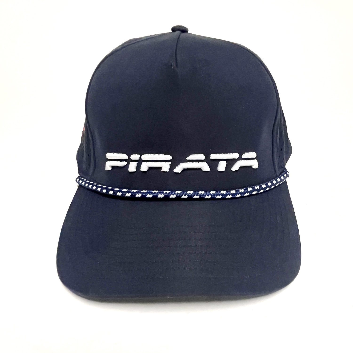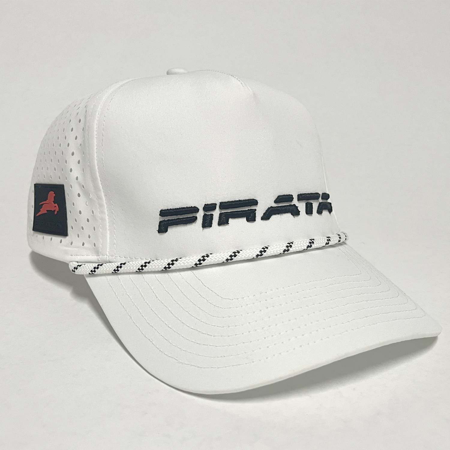 The Pirata Performance Golfer Cap blends modern performance technology with the bold, refined spirit of Pirata Della Strada®.🏁 Designed for golfers and adventurers who live life on the redline, this structured mid-profile 5-panel rope cap is crafted from durable 100% recycled polyester, delivering both sustainability and performance. Its PFC-free water-repellent finish keeps you dry in light rain or early morning mist, while the laser-perforated panels provide exceptional airflow for maximum breathability on and off the course. A quick-dry moisture-wicking sweatband works alongside antibacterial and deodorant treatments to keep you cool, fresh, and focused throughout the day. Finished with a curved visor featuring eight rows of stitching and an adjustable snapback closure, The Pirata Performance Golfer Cap offers a comfortable 58 cm fit and a clean, modern aesthetic—perfect for golf, outdoor lifestyle wear, or representing the refined performance ethos of Pirata Della Strada.
