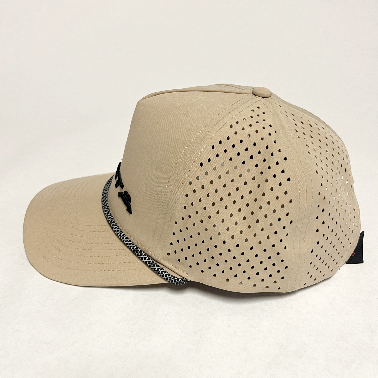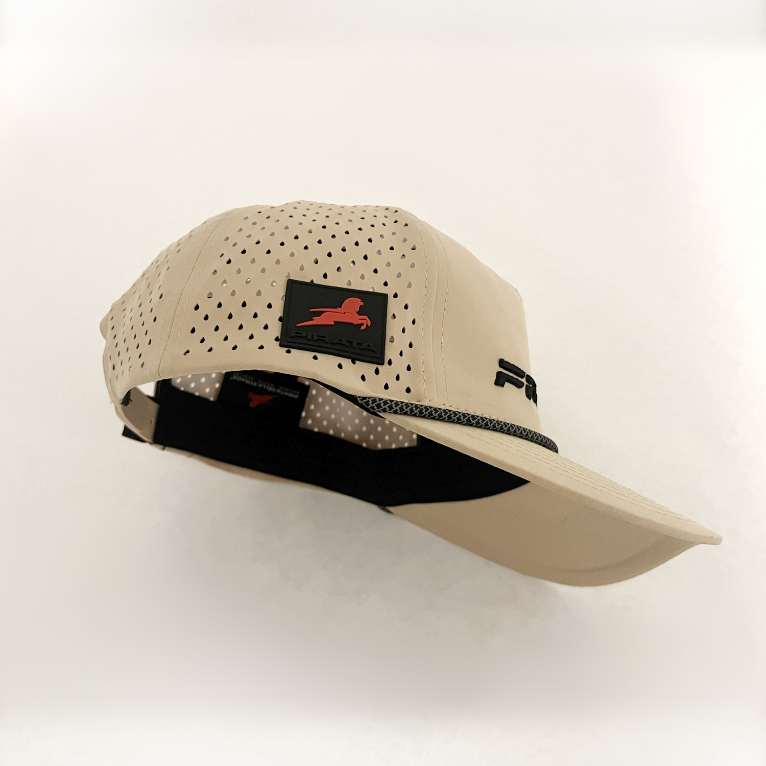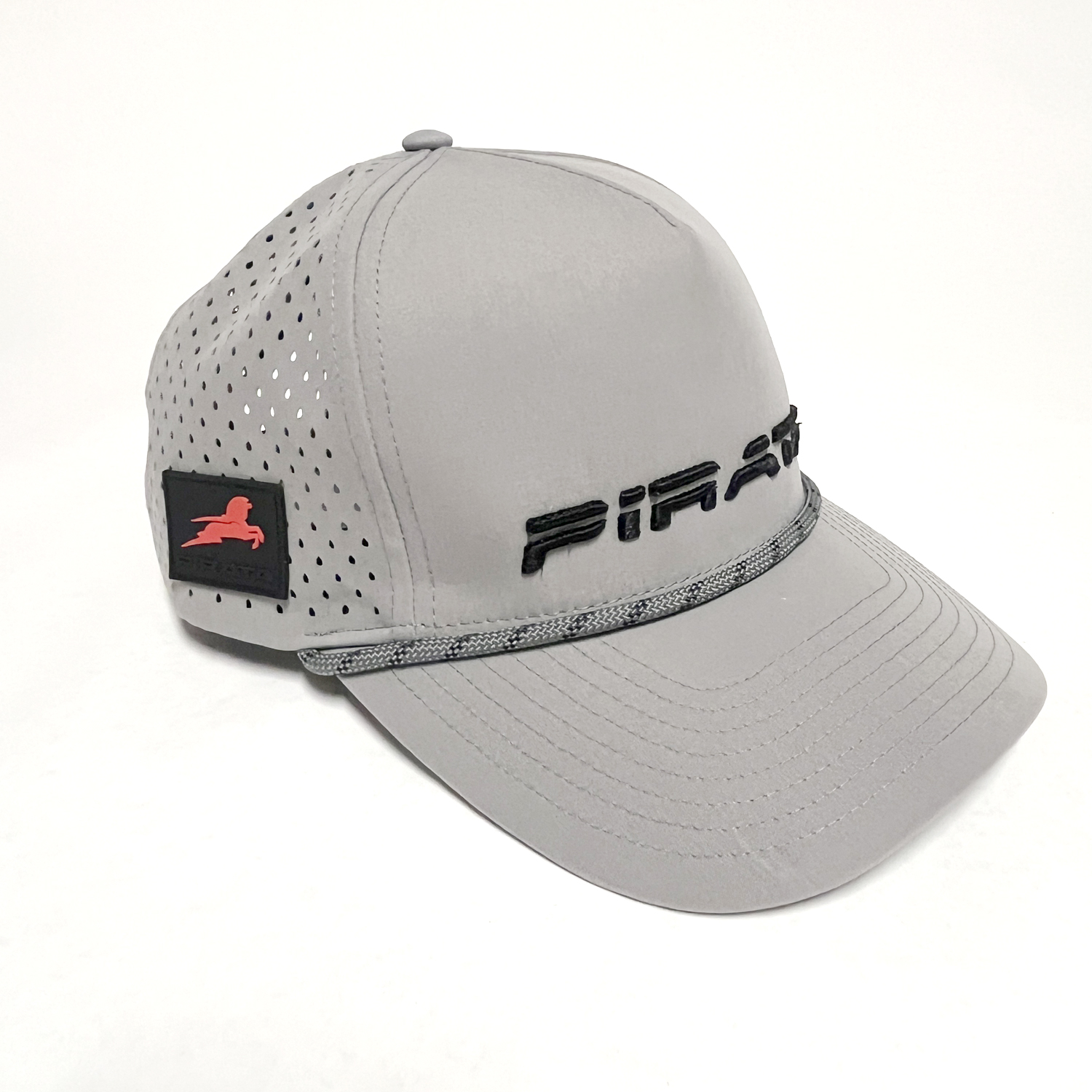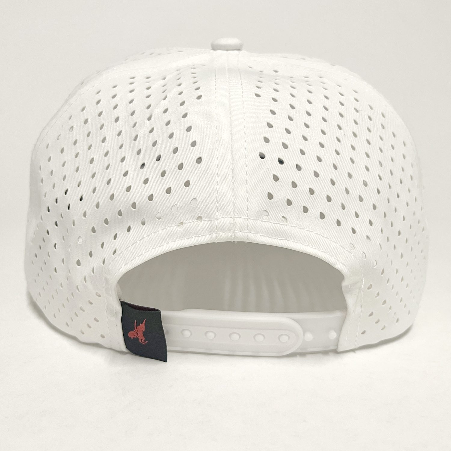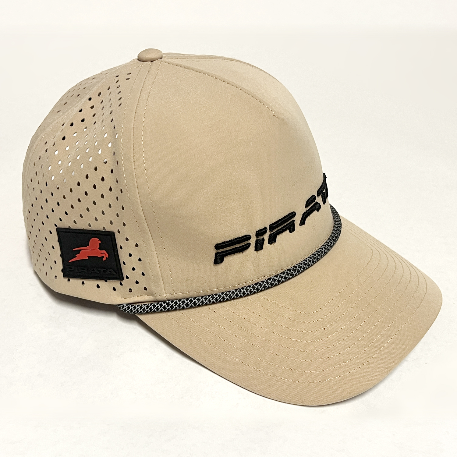 The Pirata Performance Golfer Cap blends modern performance technology with the bold, refined spirit of Pirata Della Strada®.🏁 Designed for golfers and adventurers who live life on the redline, this structured mid-profile 5-panel rope cap is crafted from durable 100% recycled polyester, delivering both sustainability and performance. Its PFC-free water-repellent finish keeps you dry in light rain or early morning mist, while the laser-perforated panels provide exceptional airflow for maximum breathability on and off the course. A quick-dry moisture-wicking sweatband works alongside antibacterial and deodorant treatments to keep you cool, fresh, and focused throughout the day. Finished with a curved visor featuring eight rows of stitching and an adjustable snapback closure, The Pirata Performance Golfer Cap offers a comfortable 58 cm fit and a clean, modern aesthetic—perfect for golf, outdoor lifestyle wear, or representing the refined performance ethos of Pirata Della Strada.